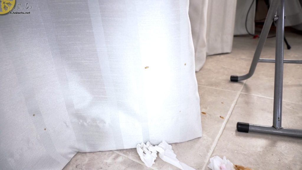 奥のカーテンやらが跳ねたビチグソにまみれて、とにかく片付けが大変で…