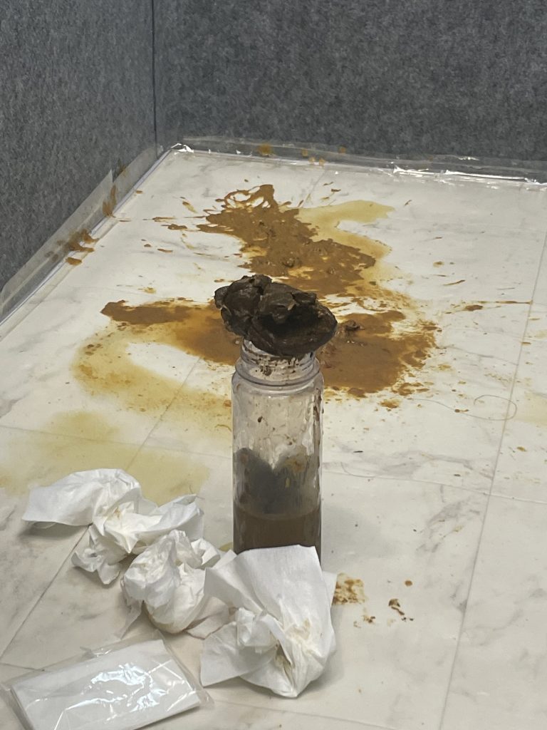 カメラの準備中に耐えられなくなって、軟便とおしっこを出しちゃった!