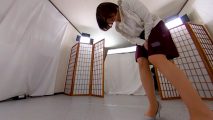 今作は「着衣放尿」となっている。今にもおしっこを漏らしてしまいそうな女が登場し、ぐるりと周りをまわってから、目の前にしゃがむ。まるで「ここならおしっこしていい」と思っているかのようだ。やがてまたを開き、M字に近い格好で、服を着たまま放尿を始めるのだった。「おもらし」に限りなく近い「限界着衣放尿」を360°自由自在に見渡せるVRの空間でご堪能いただければ幸いです。