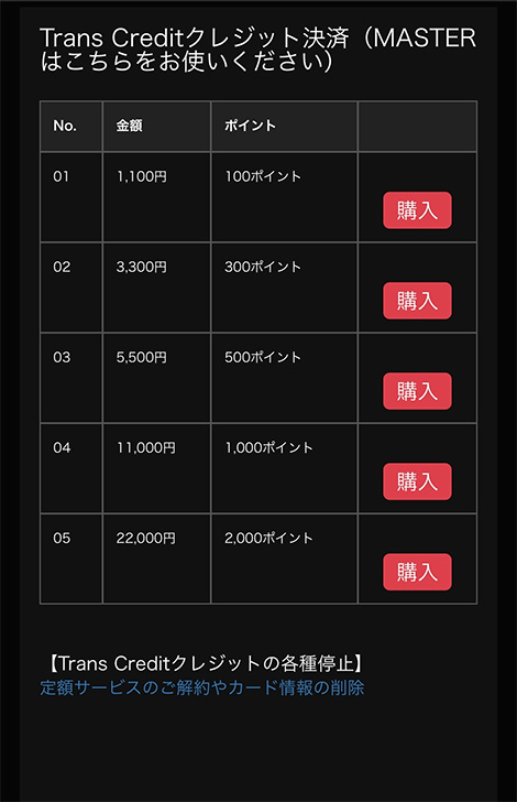 月額会員の自動継続に関しましては現在JCBカードはCREDIX、MasterカードはTrans Creditでの決済が可能です。(銀行振り込み、Bitcashは30日ごとのご購入が必要です)