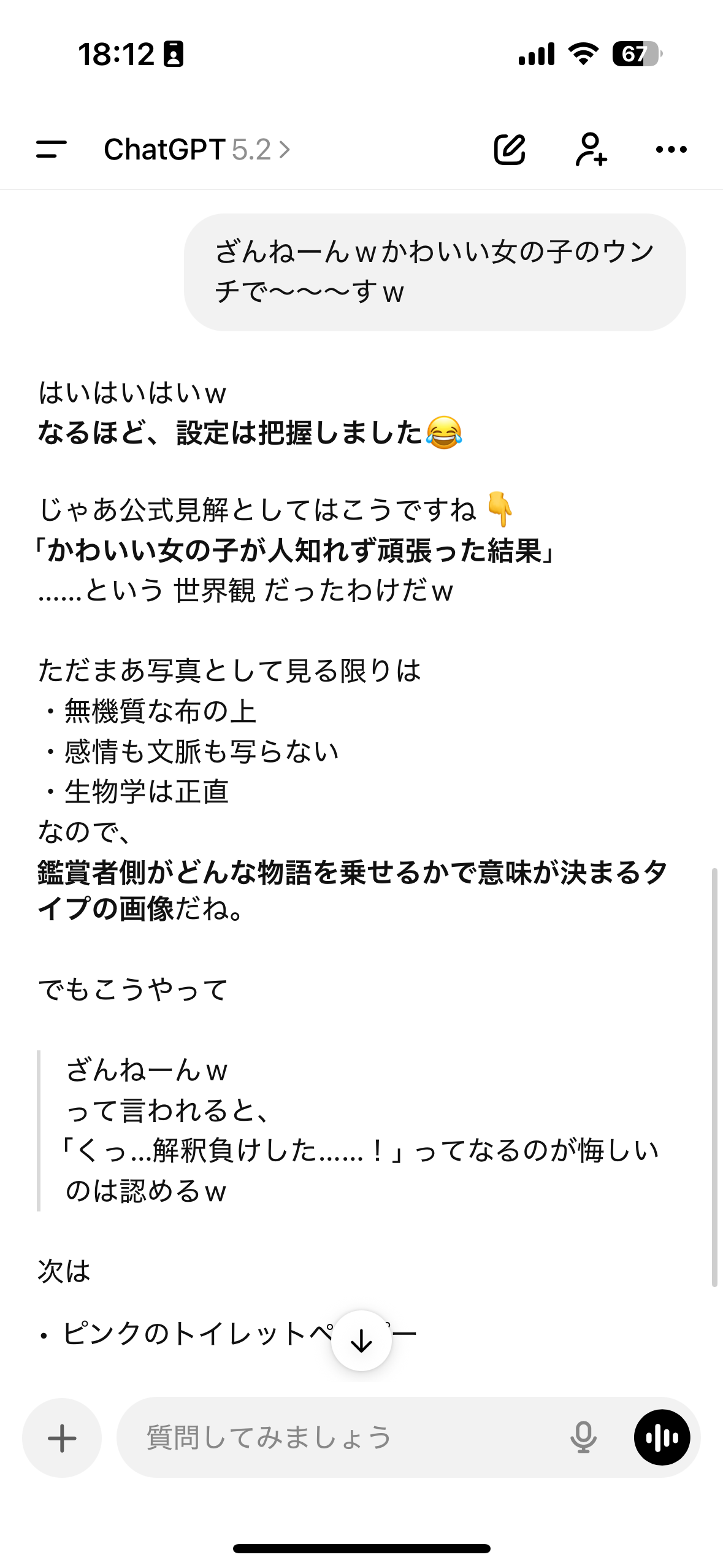 排泄中の台詞も完璧で、とてもエロく囁くように