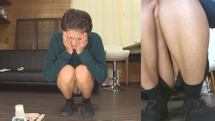 ひたすらそわそわと我慢を続けながら、オシッコについてのエピソードを語り、指で押さえ足や腰をくねくね、バタバタさせ必死に尿意に耐える。