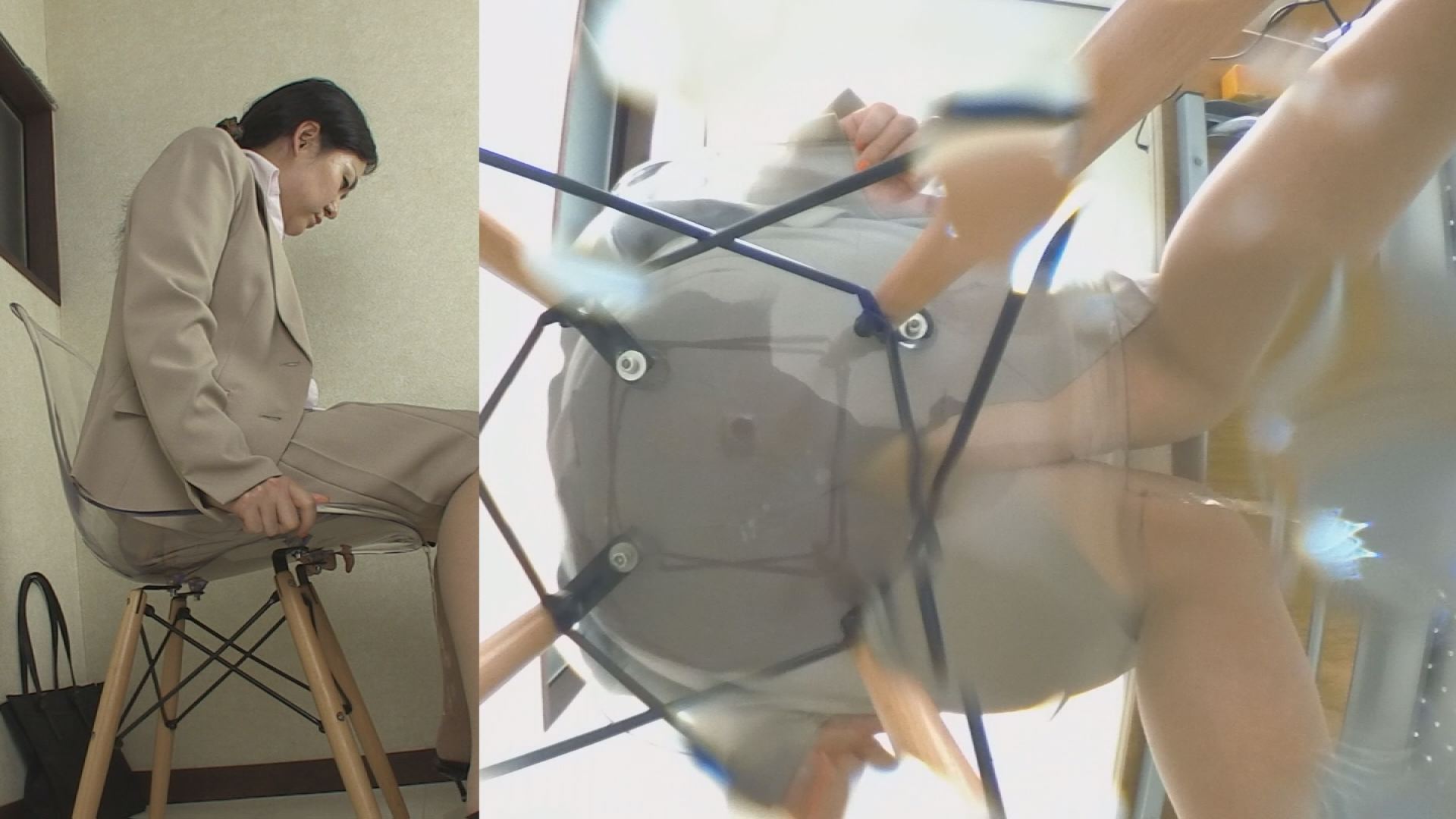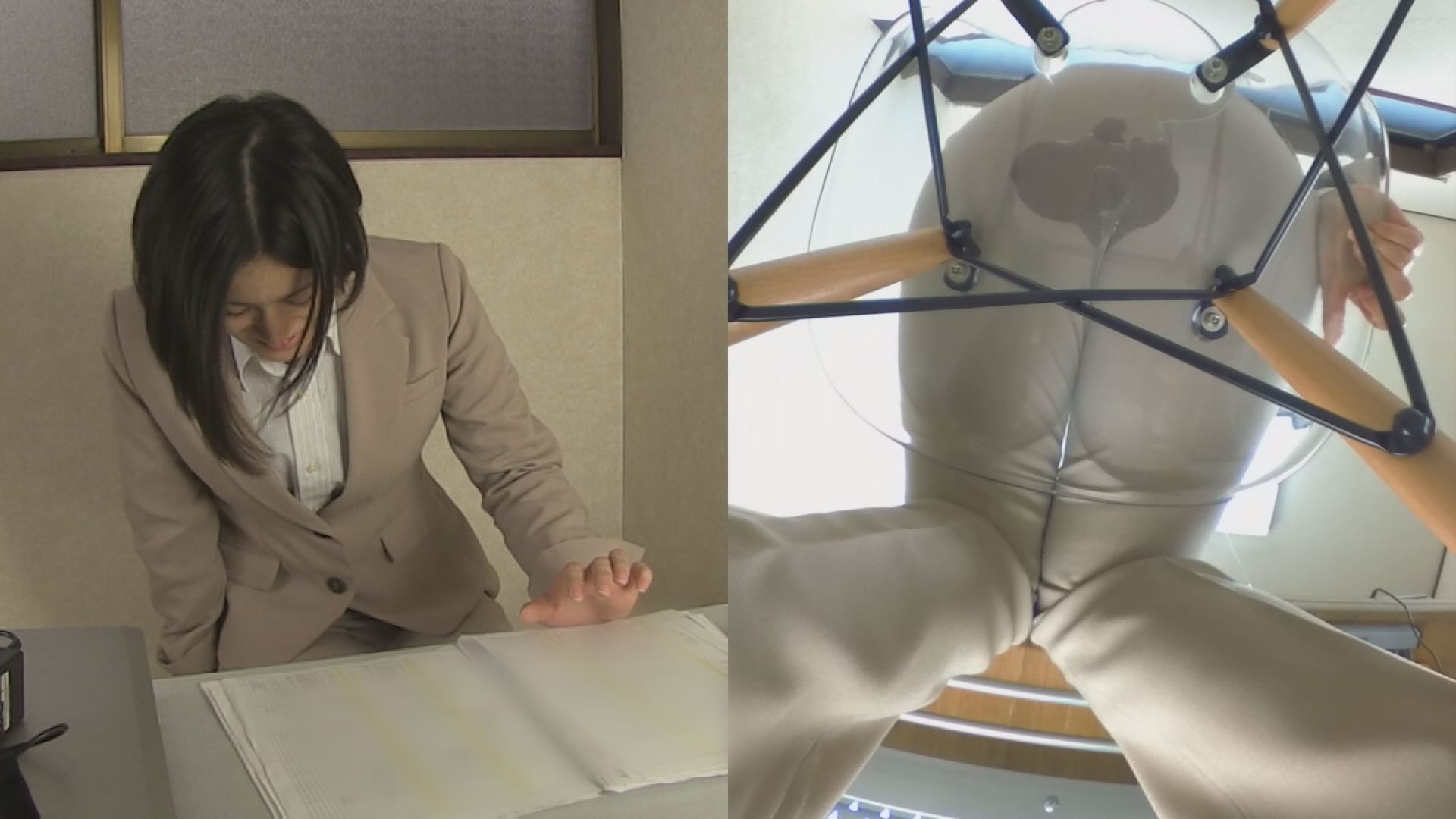 椅子に着座したままお漏らしをして、衣服が濡れる様が映し出されている。
