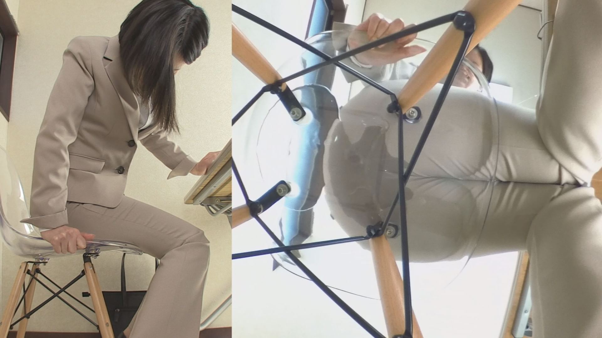 全体、足元、そして透明椅子の下、さらに横からのアングルで