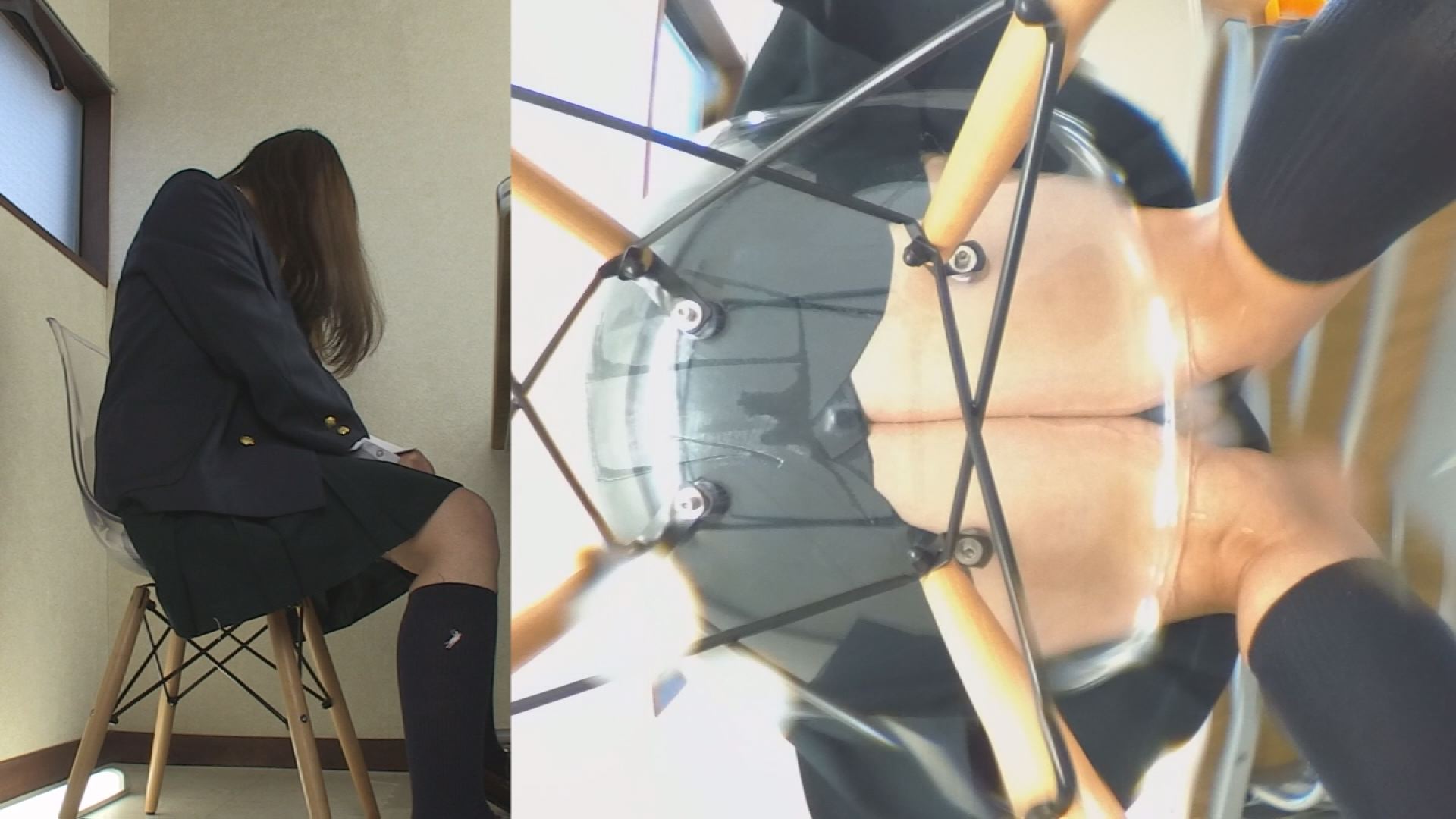 加えて、おもらしの瞬間は透明な椅子への着座状態!!もちろん直下アングルも