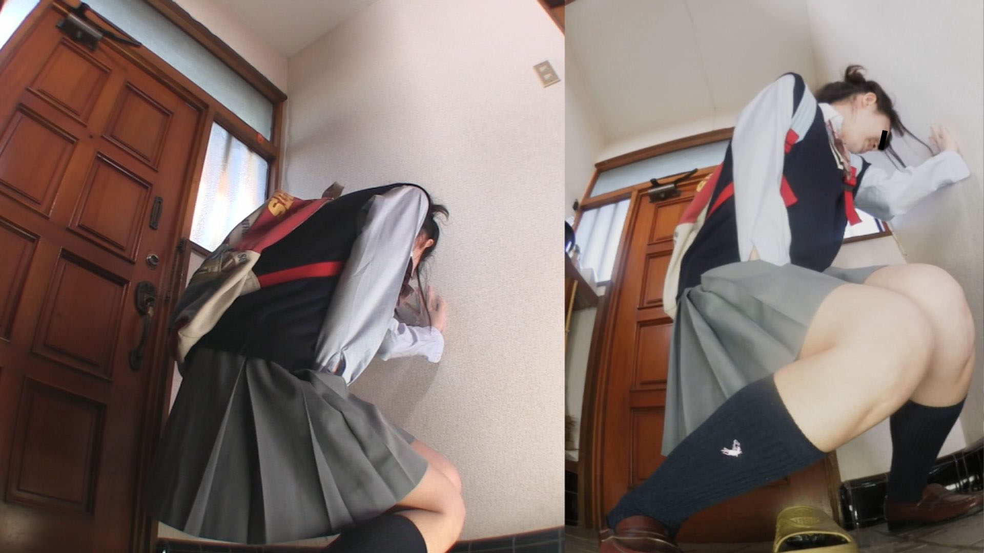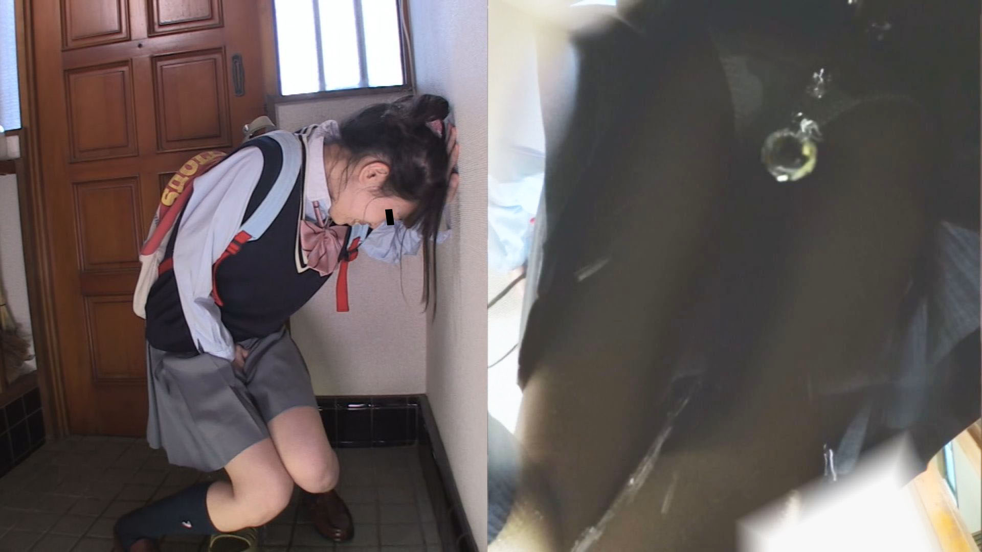 前押さえでもじもじそわそわしているところを見ると、小便を我慢しているようだ。「知らない人を家に入れない」と丁重にお断りするも「本当に限界なんです!」と食い下がる。カバンで隠してはいるが、お股をぎゅうぎゅう握りしめているのが解る。「お願いします…、嗚呼っ!」叫ぶと同時にシュィィィという音が響き、お股から小水が溢れ出て、女の足元に水溜りが…。そう、女達は人様の家の玄関でおもらしをしてしまったのだ。羞恥で顔を真赤に染め、泣きそうな程落ち込む女達。仕方がないから、タオルとペーパーを貸して後始末をさせる…。