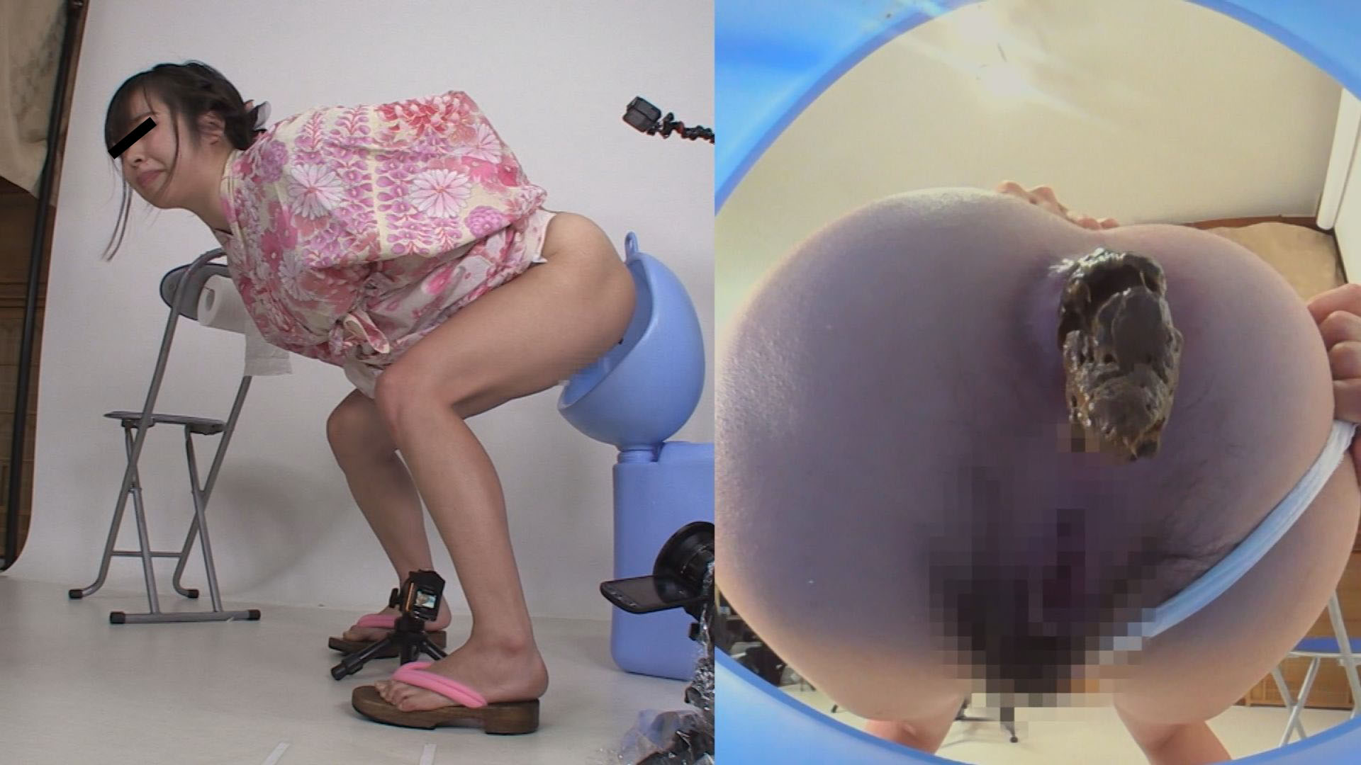 浴衣の可愛い娘も卑猥な姿勢で使い方を説明。前向き立ち小便パートでは最初はうまく行っていたが、途中からエレエレエレと小便が垂れて、脱ぎかけのパンティが濡れていく様子も見える。うんこパートも見応え満点。