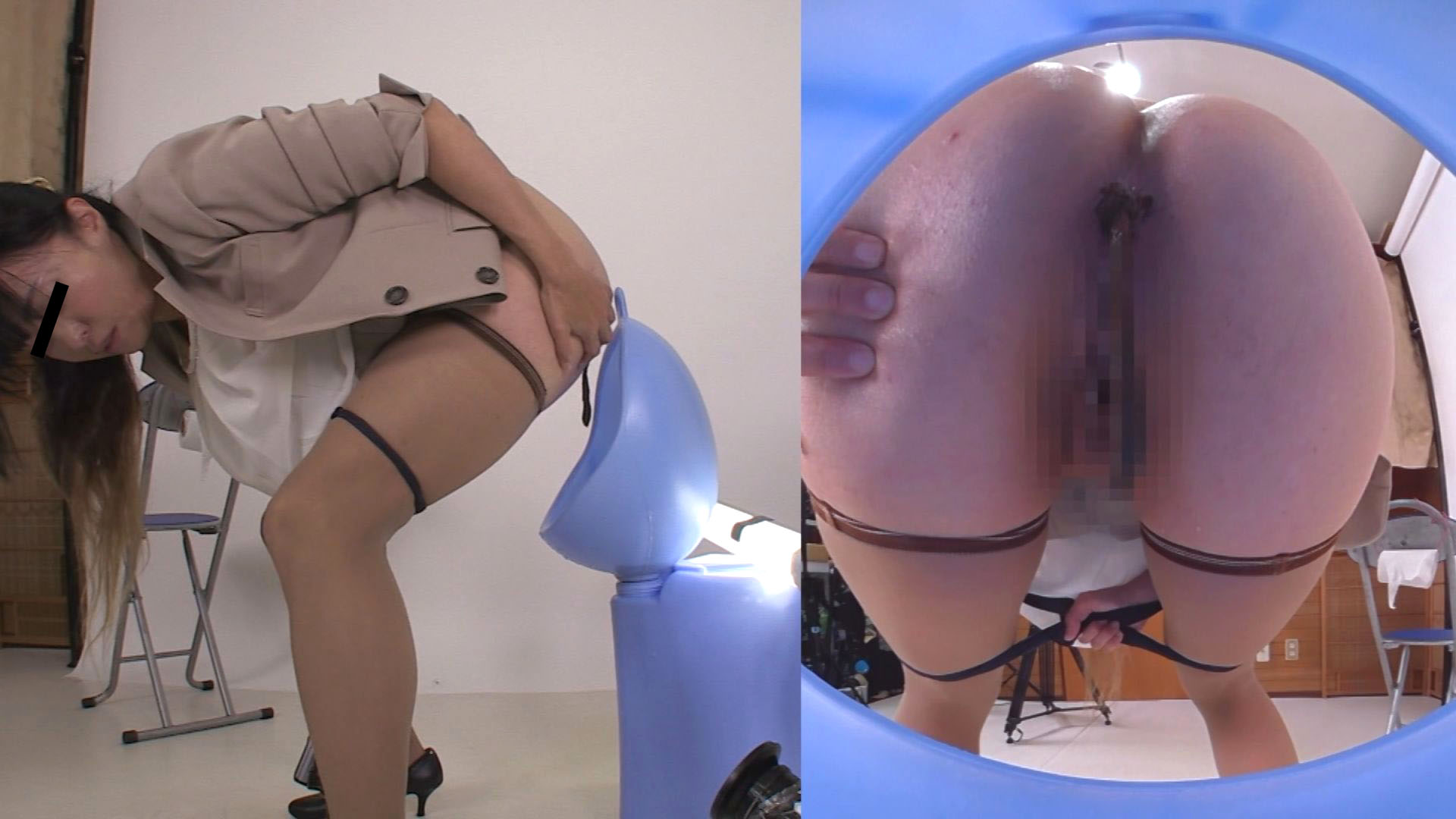 真面目そうなOLちゃんが説明。うんこが入りそうで入らないという、ハラハラドキドキ排泄を見せてくれる。肛門には便が付着していて、それを拭い取る様もバッチリ。実に恥ずかしそうな表情が良い。